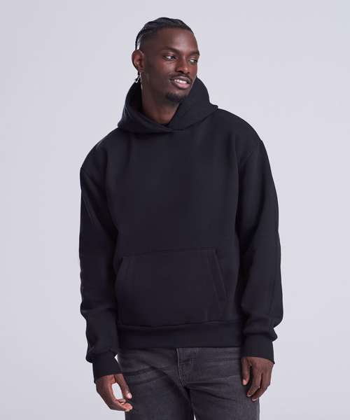This unisex hoodie ensures maximum style with minimal effect. Made with a heavyweight, premium, cotton-rich fabric, it has an oversized boxy fit, true to size. Features include a large pouch pocket, ribbed cuffs and hem. A hoodie to keep you warm and comfortable – and an everyday essential.