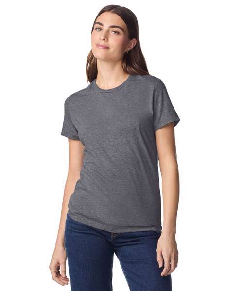 Fitted silhouette with side seam. High stitch density for smoother printing surface. Tearaway label. Seamless twin-needle 1.3cm collar. Taped neck and shoulders, twin-needle sleeves and bottom hem. Also available in kids.